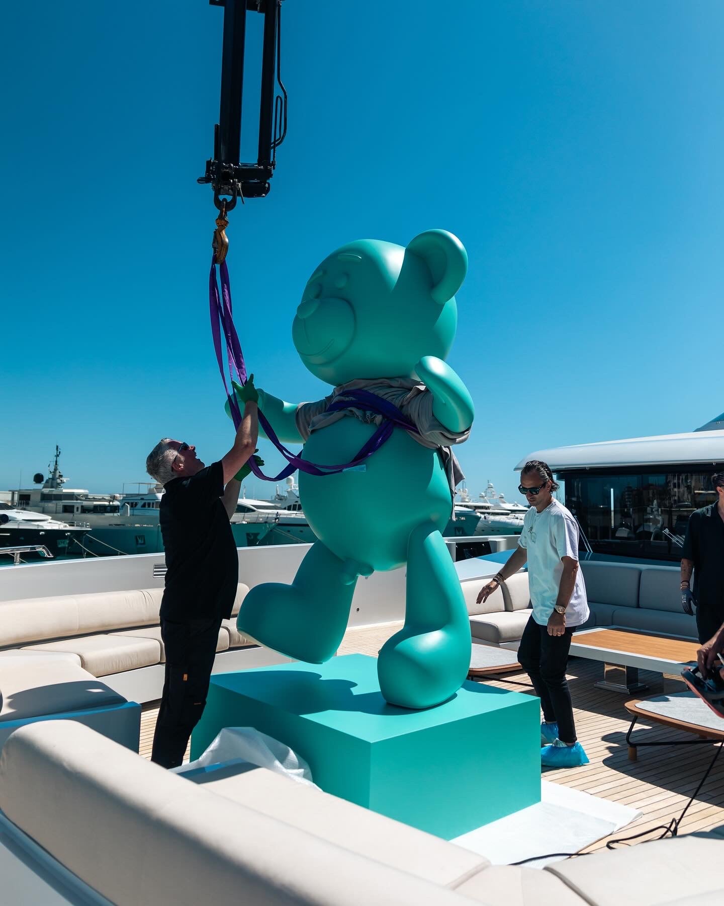 During the prestigious Monaco Formula One Grand Prix, which is held every year in the tiny streets in the mountainous Riviera state, this year, the four meter tall Bare Hug sculpture was on display on the bow of the 52 meter long super yacht named 'Seven Sins'. Moored in the middle of the T-jetty adjacent to the Route de la Piscine in the center of Monte-Carlo, it attracted millions of spectators from around the world.
