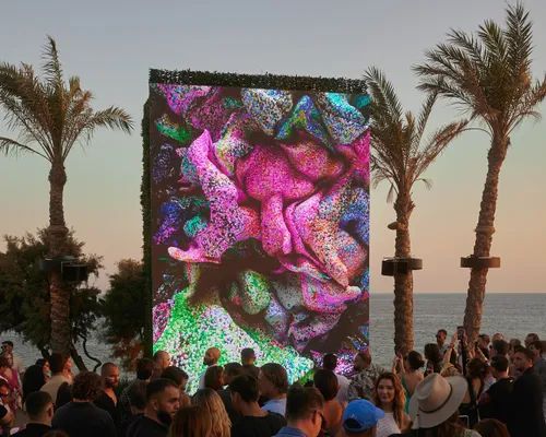 This body of work will be celebrated during the exhibition's opening from June 18th to 21st at Scorpios Mykonos. A highlight of the event will be a 5-meter tall cubed LED screen showcasing an animation of one of the thousand Dream Trees. The sale of the physical prints will commence during the exhibition.