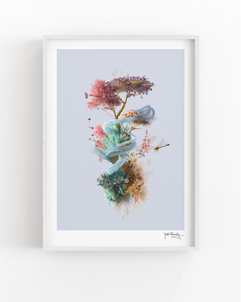When you purchase a Tree of Life artwork, you receive a stunning art print along with a complimentary digital companion (a NFT, a Non-Fungable Token). This NFT serves as your certificate of authenticity on the Etherium blockchain, ensuring the originality and uniqueness of your piece.