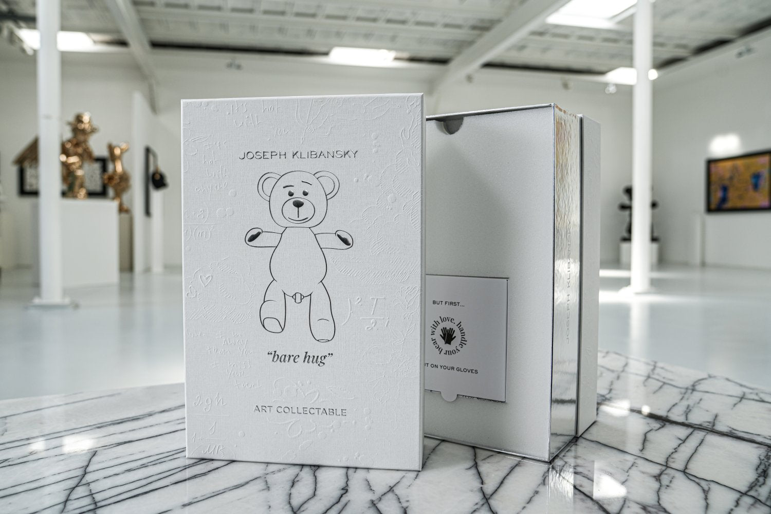 Based on the now long sold-out original bronze edition, Bare Hug — Collectable returns in a limited run of hand-crafted cast resin—making this sought-after piece more accessible while staying true to the artist’s vision and meticulous craftsmanship. At first glance, it’s a familiar and disarming figure: a teddy bear, arms open wide, inviting you into a hug. But take a second look, and you’ll realize this is no ordinary bear.