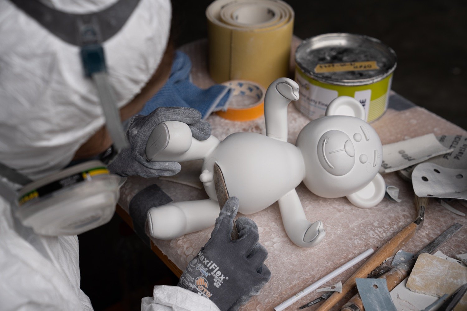Based on the now long sold-out original bronze edition, Bare Hug — Collectable returns in a limited run of hand-crafted cast resin—making this sought-after piece more accessible while staying true to the artist’s vision and meticulous craftsmanship. At first glance, it’s a familiar and disarming figure: a teddy bear, arms open wide, inviting you into a hug. But take a second look, and you’ll realize this is no ordinary bear.