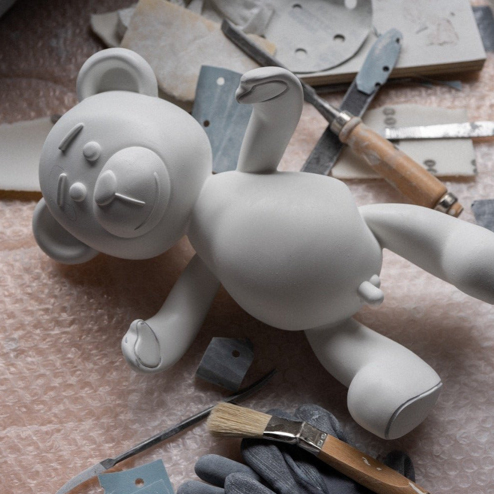 Based on the now long sold-out original bronze edition, Bare Hug — Collectable returns in a limited run of hand-crafted cast resin—making this sought-after piece more accessible while staying true to the artist’s vision and meticulous craftsmanship. At first glance, it’s a familiar and disarming figure: a teddy bear, arms open wide, inviting you into a hug. But take a second look, and you’ll realize this is no ordinary bear.