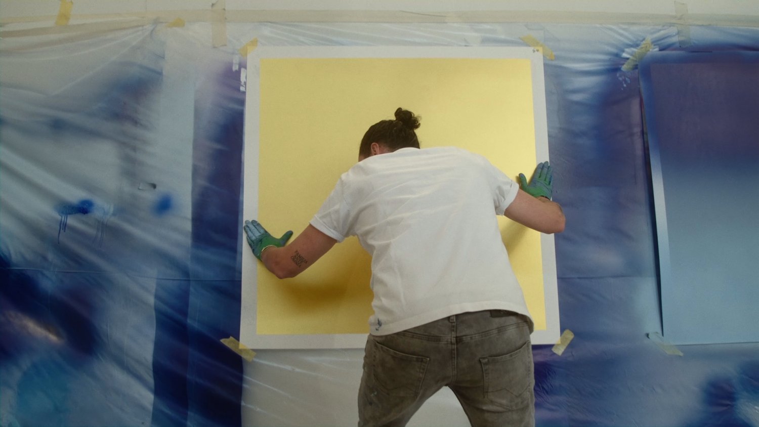 Materials acrylic paint archival cotton paper museum glass screen print ink wood and aluminum frame