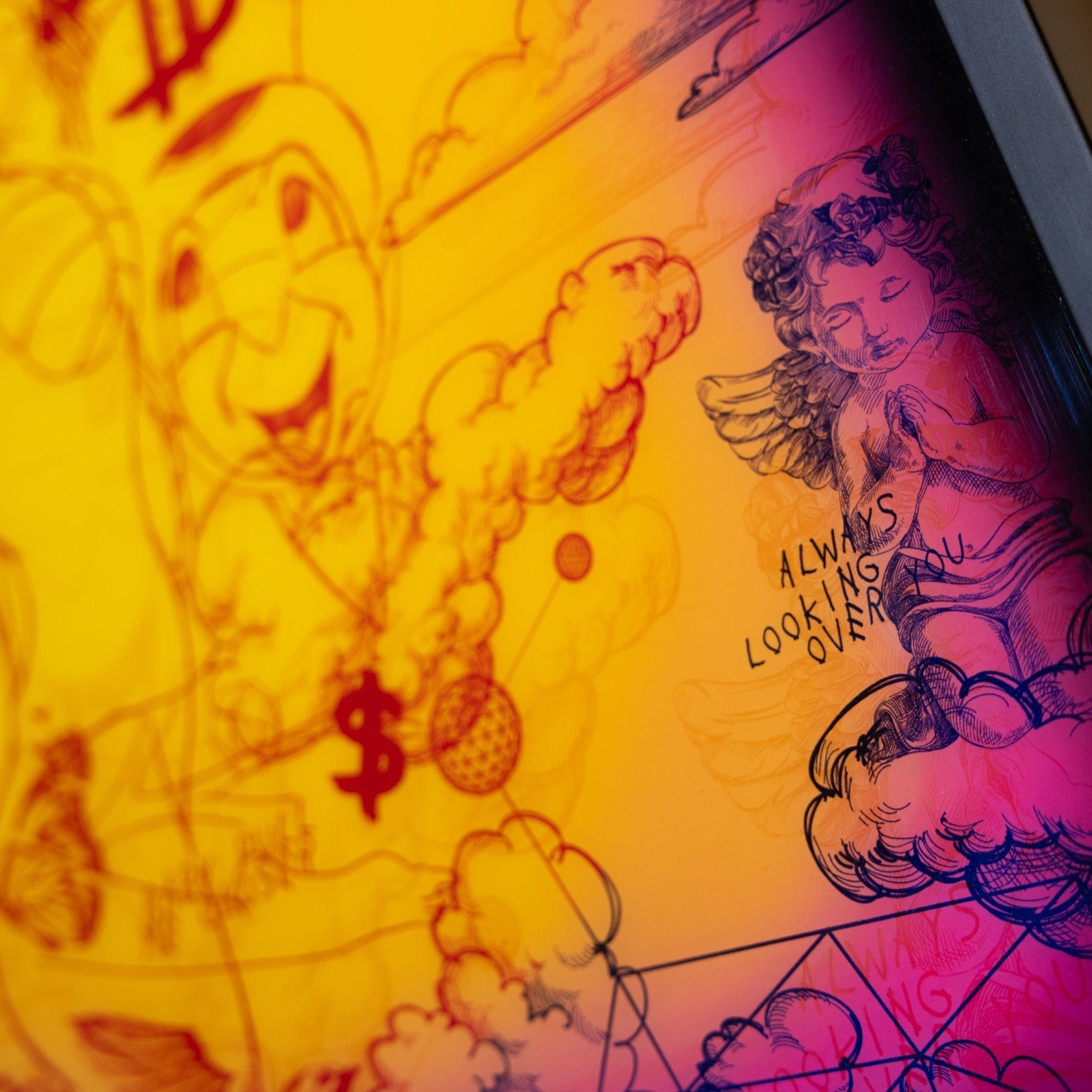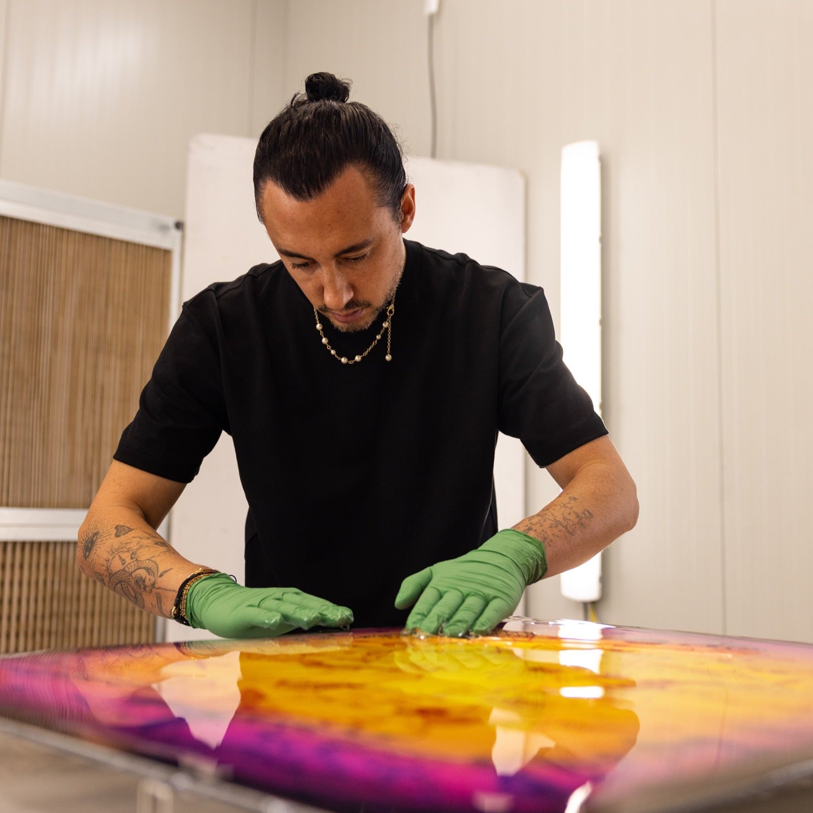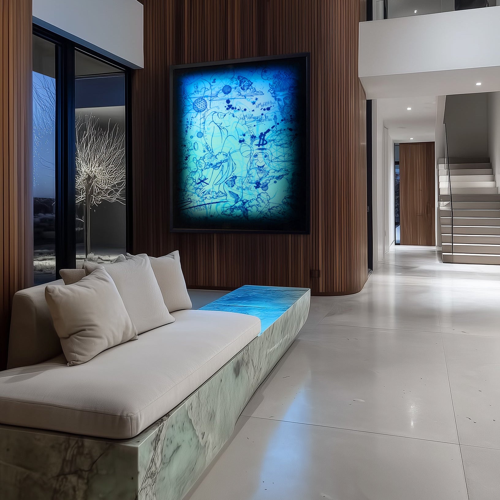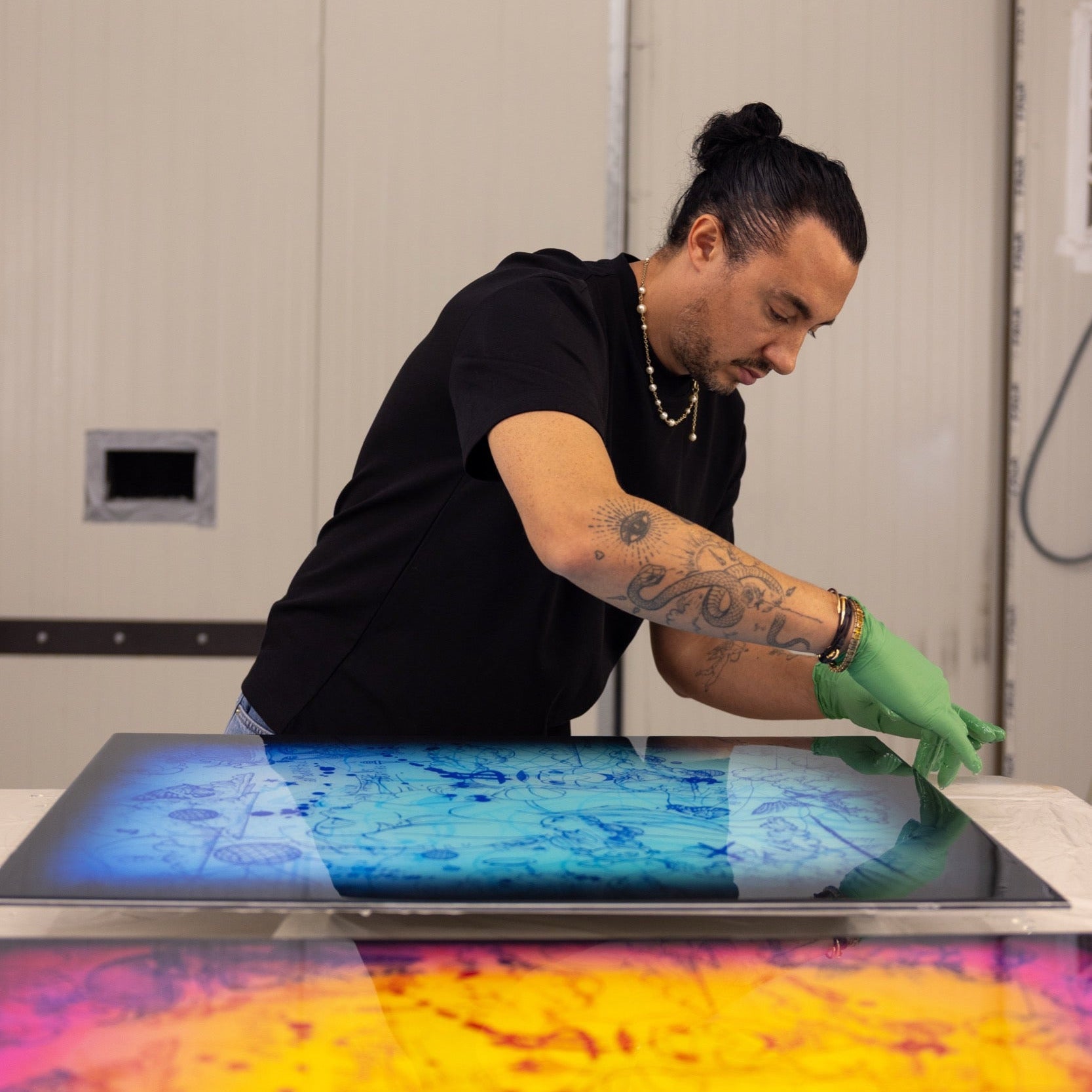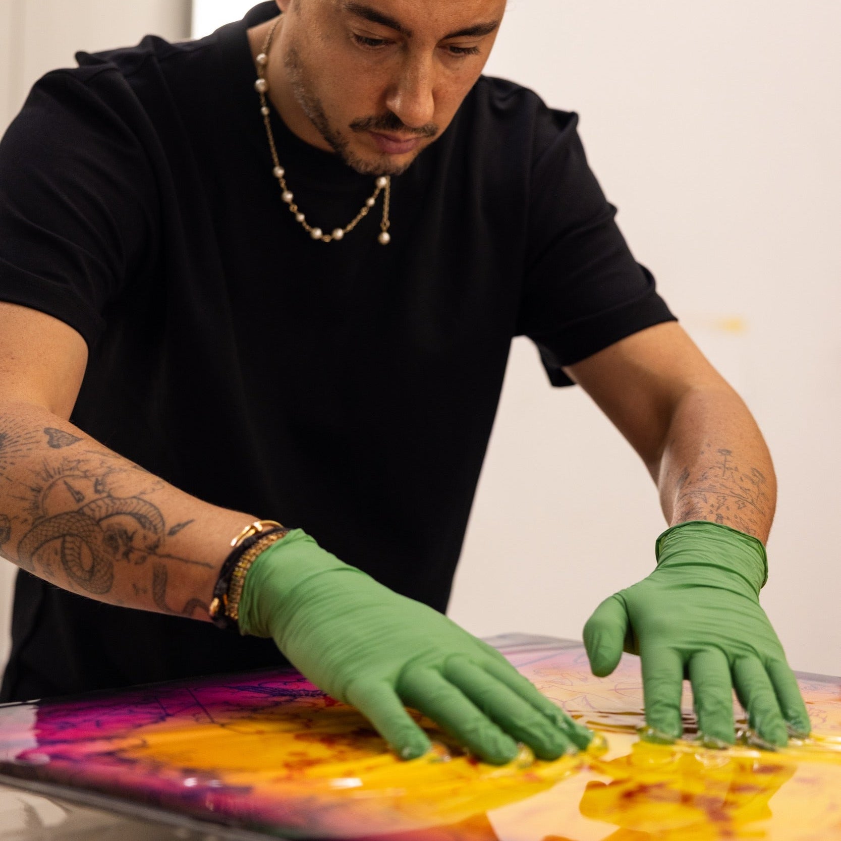 Available in three sizes, each Giclée print is crafted on 100% archival cotton paper, mounted on dibond for lasting quality, and hand-embellished with 3D liquid glass epoxy resin that adds stunning real-life depth and dimension. Each print is beautifully framed with a minimalist black wooden frame.