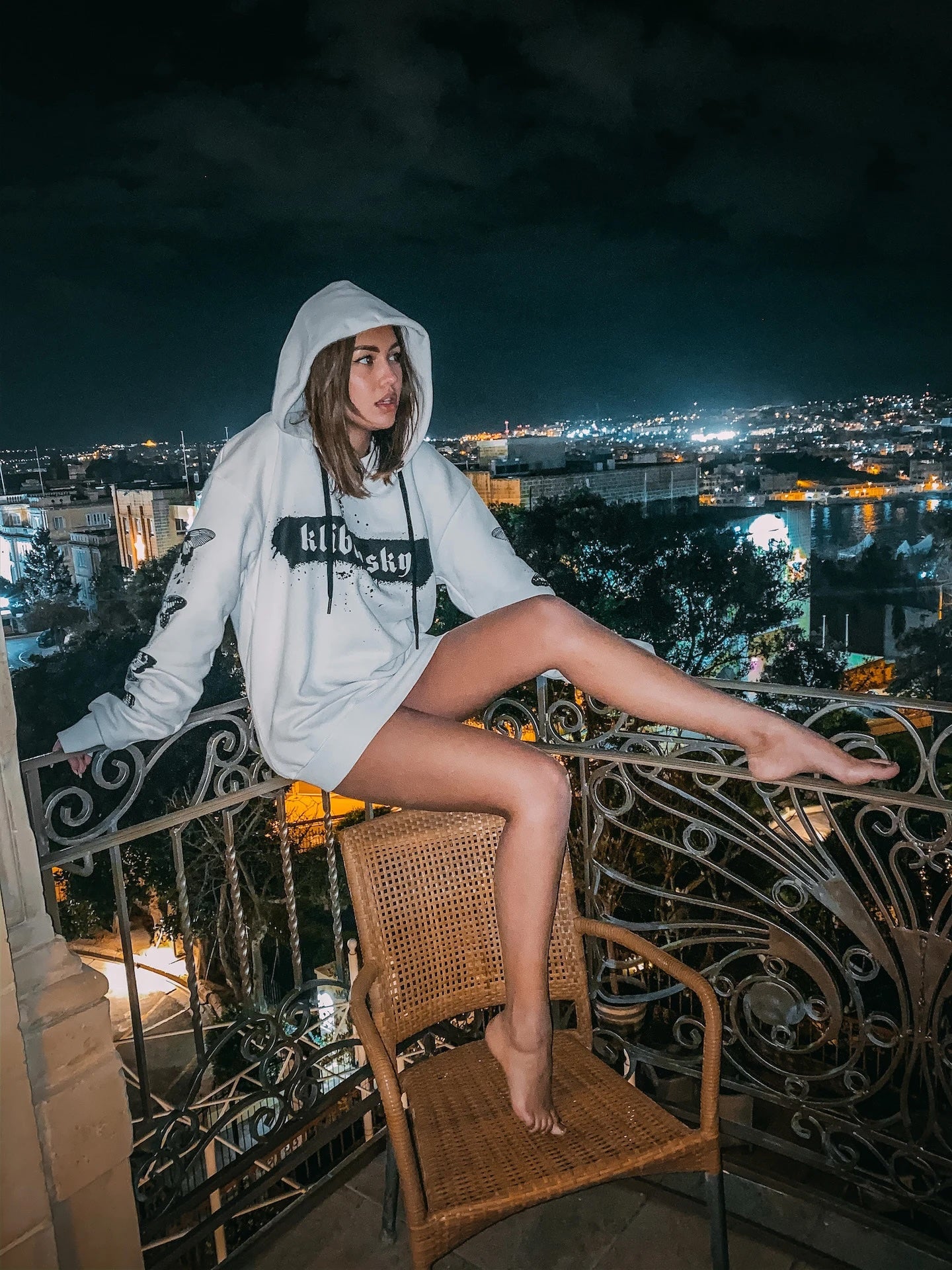 Victoria is 173 cm tall and wearing a size M for an extra oversize look.