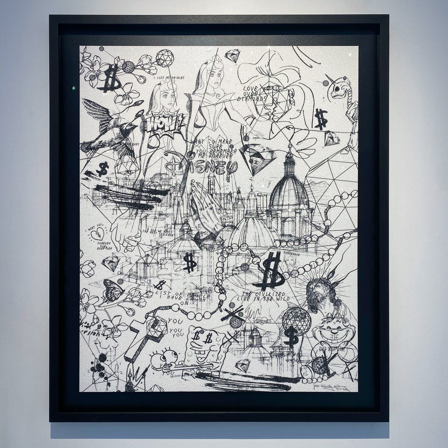 - Materials: 100% archival cotton paper, screen print ink, diamond dust