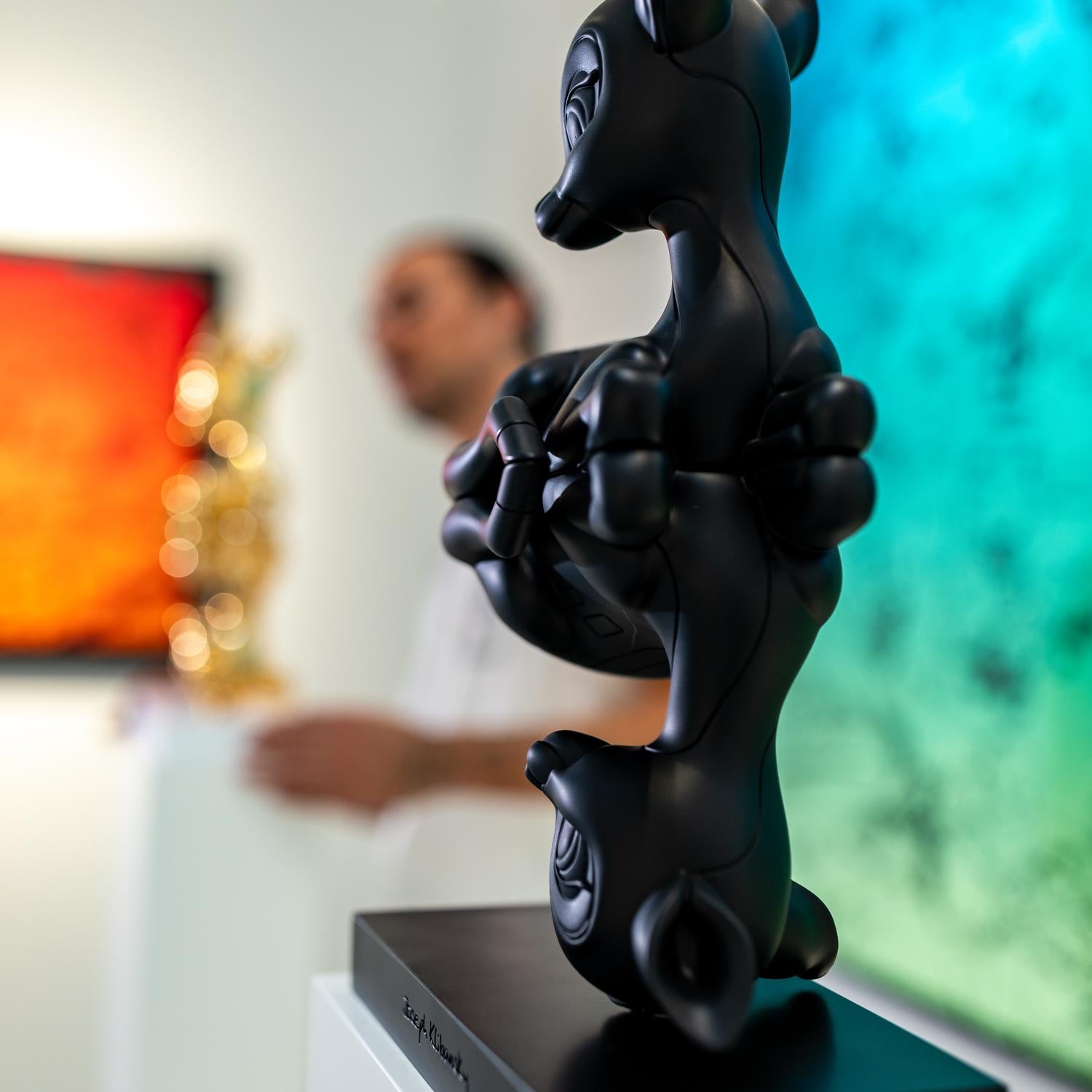 This Art Collectible, Reflections of Youth in Black, is a stunning miniature version of Joseph Klibansky’s iconic Reflections of Youth sculpture, originally released in 2017 in mirror polished bronze. Renowned as one of Klibansky’s most sought-after artworks, all original versions—across all sizes—have long been sold out.
