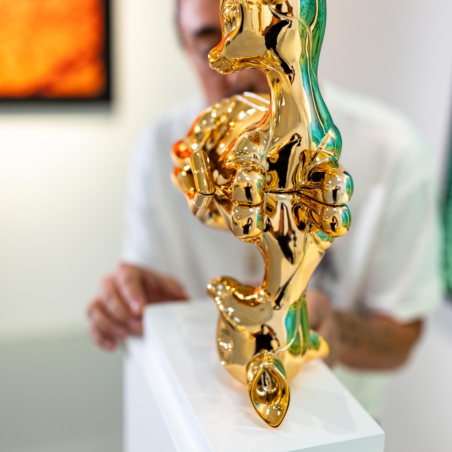 This Art Collectible, Reflections of Youth in Gold, is a stunning miniature version of Joseph Klibansky’s iconic Reflections of Youth sculpture, originally released in 2017 in mirror-polished bronze. Renowned as one of Klibansky’s most sought-after artworks, all original bronze editions—across all sizes—have long been sold out.